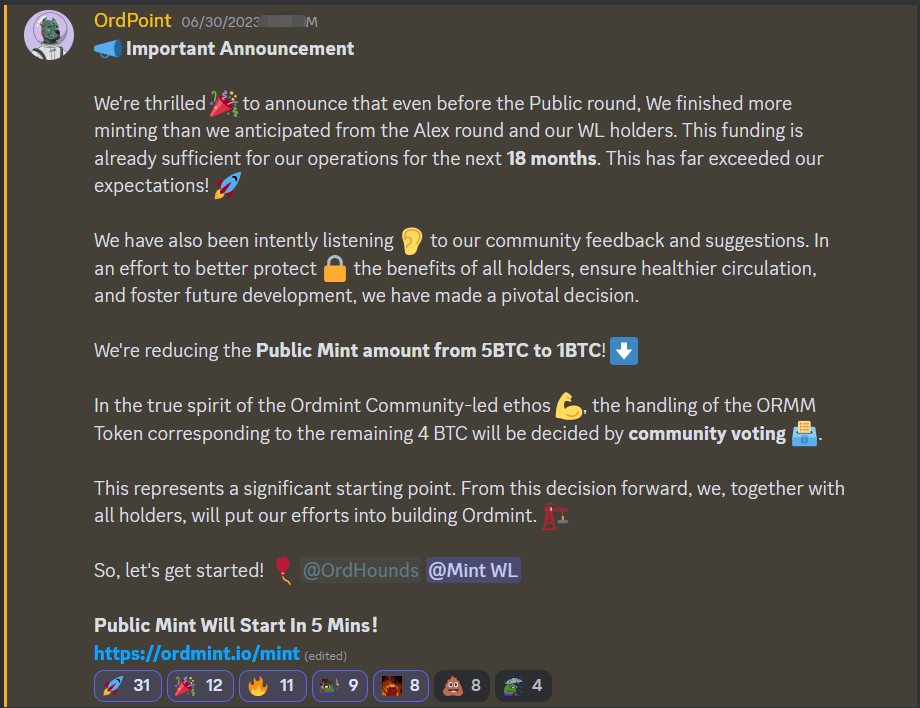 Let's celebrate the first community vote of Ordmint, marking the first step towards a Community-led approach!